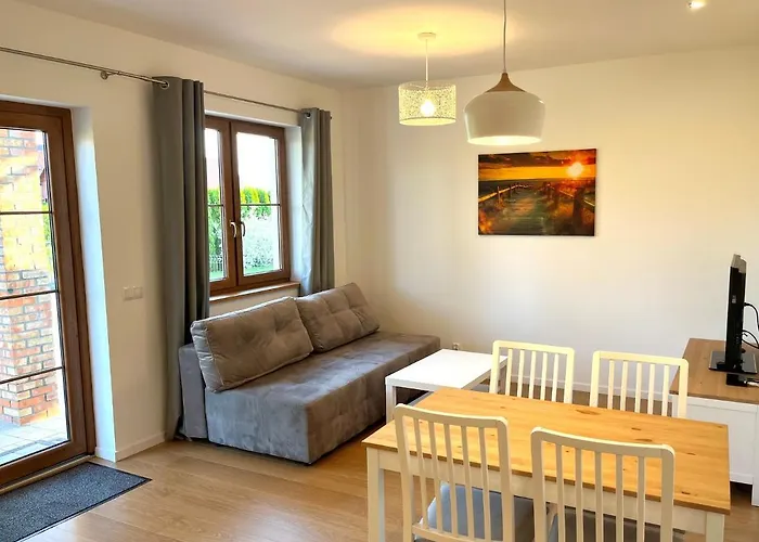 Az aquaparkhoz és kerthez rendelkező Apartament Z Ogrodem Apartman apartman 4 km-re van a Bunkry Mielno térségétől. A Promenada Sarbinowo 2 km-es távolságra található ettől szálláshelytől.